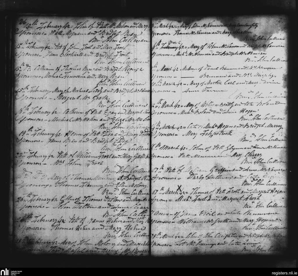 Sixmilebridge; County of Clare; Diocese of Killaloe. Baptisms, Feb. 1842 to Mar. 1842