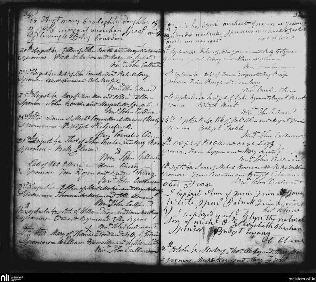 Sixmilebridge; County of Clare; Diocese of Killaloe. Baptisms, Aug. 1842 to Oct. 1842