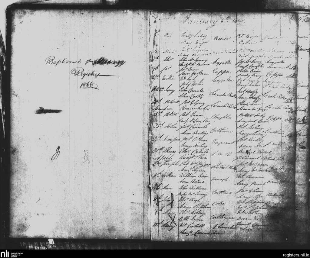 Sixmilebridge; County of Clare; Diocese of Killaloe. Baptisms, Jan. 1865 to Apr. 1865