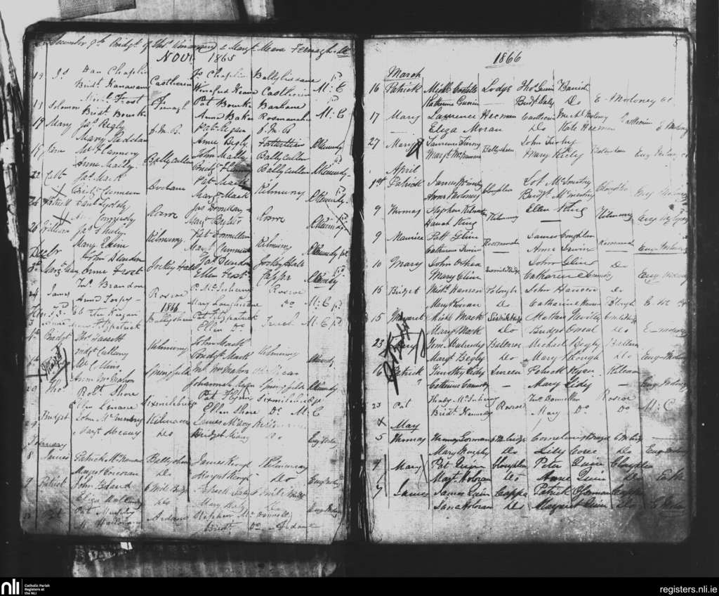 Sixmilebridge; County of Clare; Diocese of Killaloe. Baptisms, Nov. 1865 to May 1866