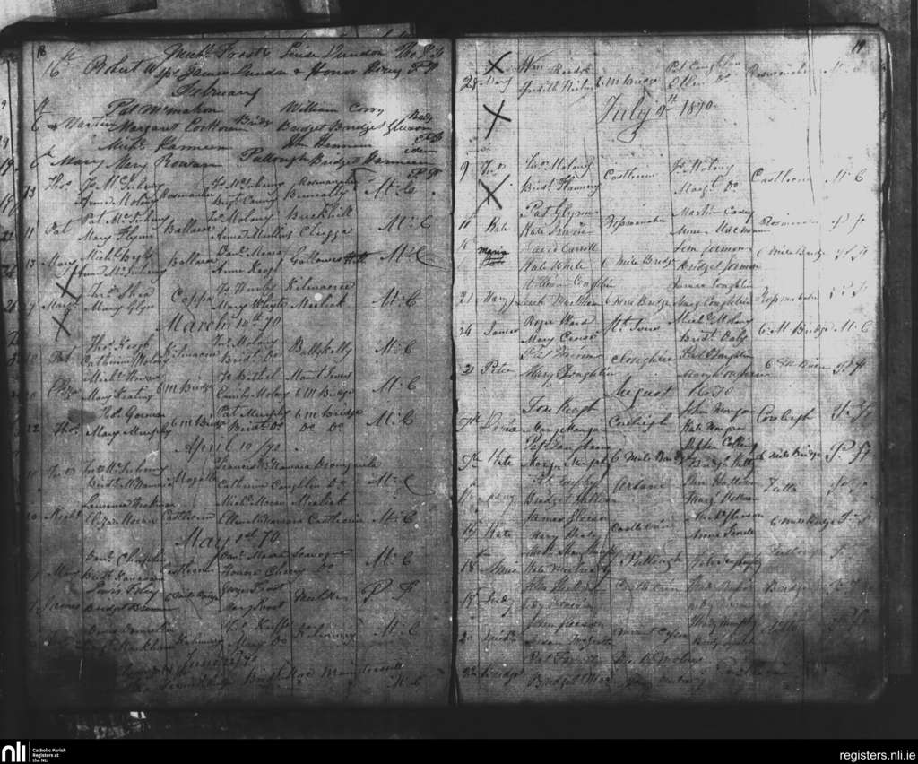 Sixmilebridge; County of Clare; Diocese of Killaloe. Baptisms, Jan. 1870 to Aug. 1870