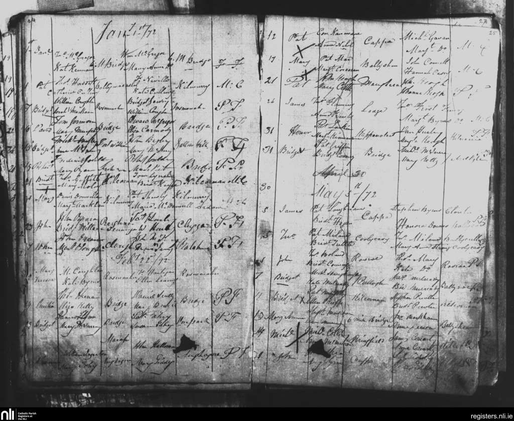 Sixmilebridge; County of Clare; Diocese of Killaloe. Baptisms, Jan. 1872 to May 1872