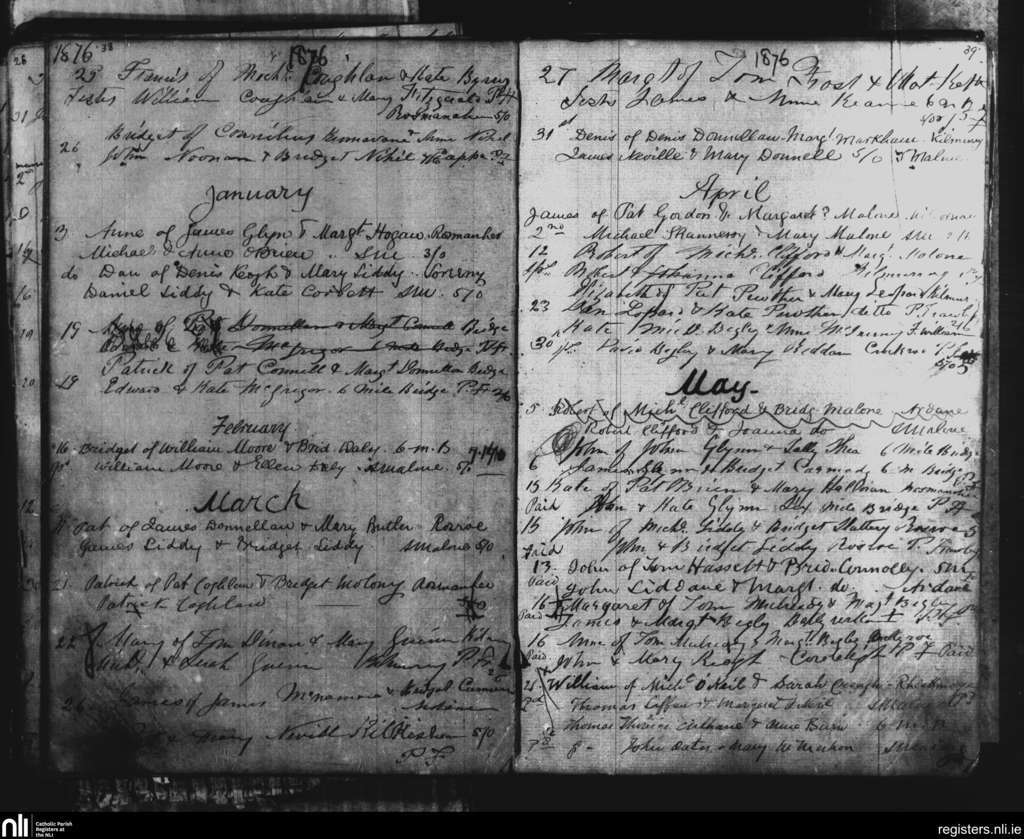Sixmilebridge; County of Clare; Diocese of Killaloe. Baptisms, Dec. 1875 to May 1876