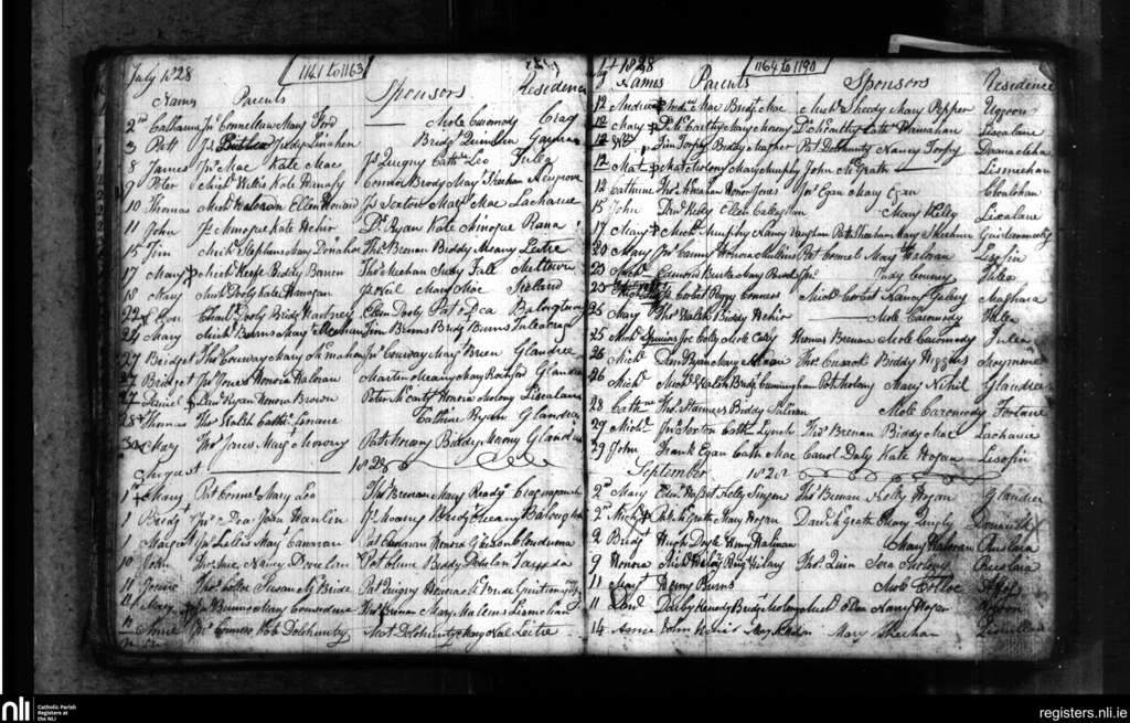 Tulla; County of Clare; Diocese of Killaloe. Baptisms, July 1828 to Sep. 1828