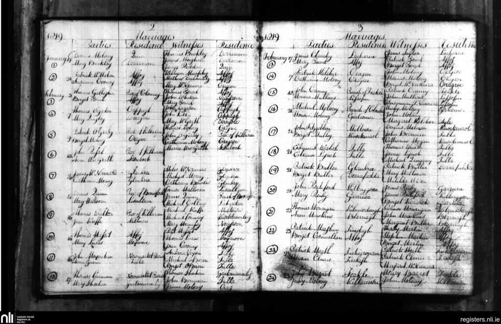 Tulla; County of Clare; Diocese of Killaloe. Marriages, Jan. 1819 to Feb. 1819