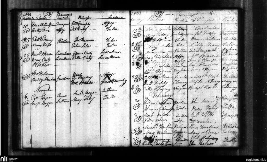 Tulla; County of Clare; Diocese of Killaloe. Marriages, Sep. 1832 to Feb. 1833