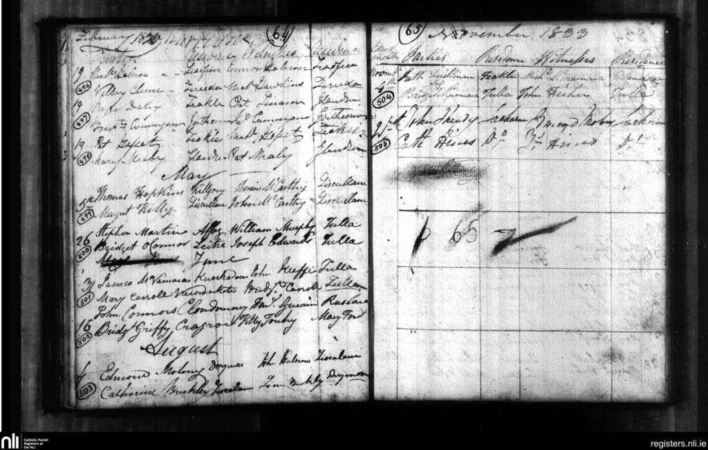 Tulla; County of Clare; Diocese of Killaloe. Marriages, Feb. 1833 to Nov. 1833