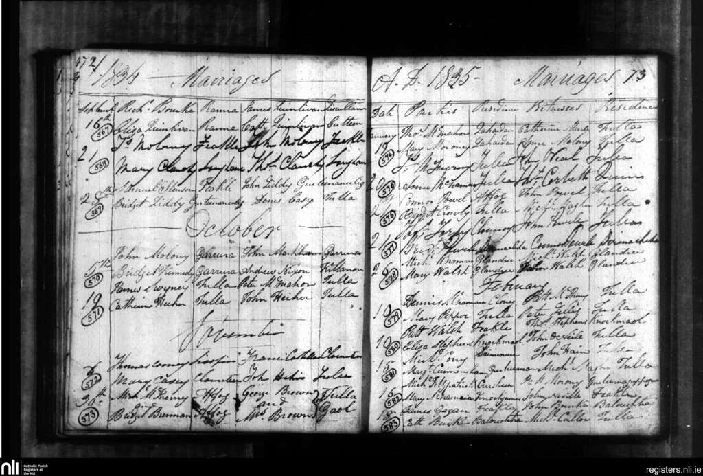 Tulla; County of Clare; Diocese of Killaloe. Marriages, Sep. 1834 to Feb. 1835