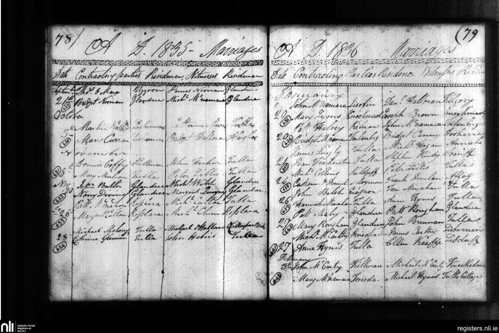Tulla; County of Clare; Diocese of Killaloe. Marriages, Sep. 1835 to Feb. 1836