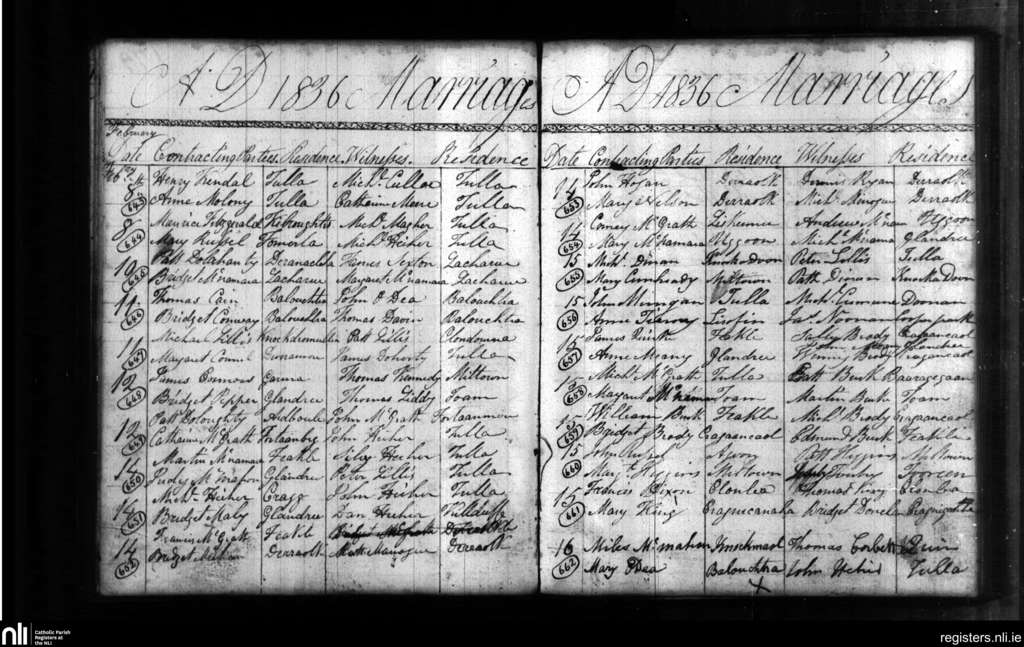 Tulla; County of Clare; Diocese of Killaloe. Marriages, Feb. 1836