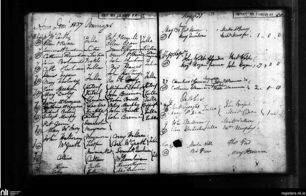 Tulla; County of Clare; Diocese of Killaloe. Marriages, Feb. 1837 to Nov. 1837