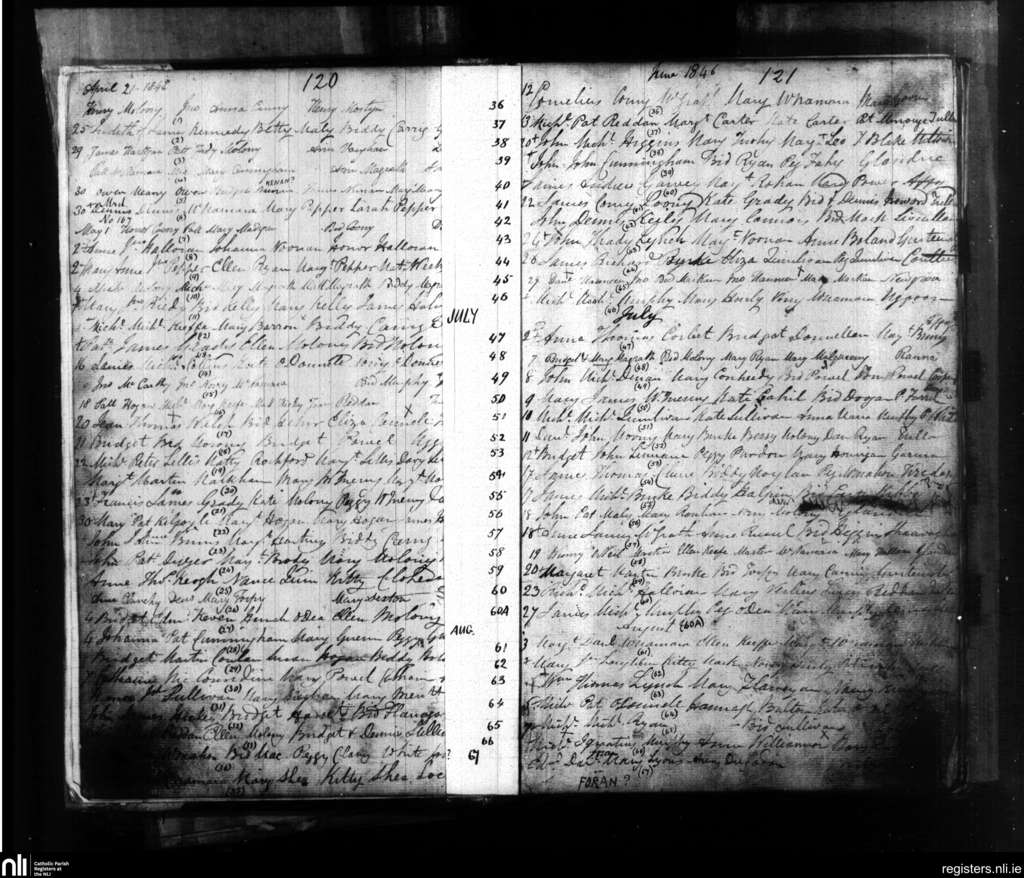 Tulla; County of Clare; Diocese of Killaloe. Baptisms, Apr. 1846 to Aug. 1846