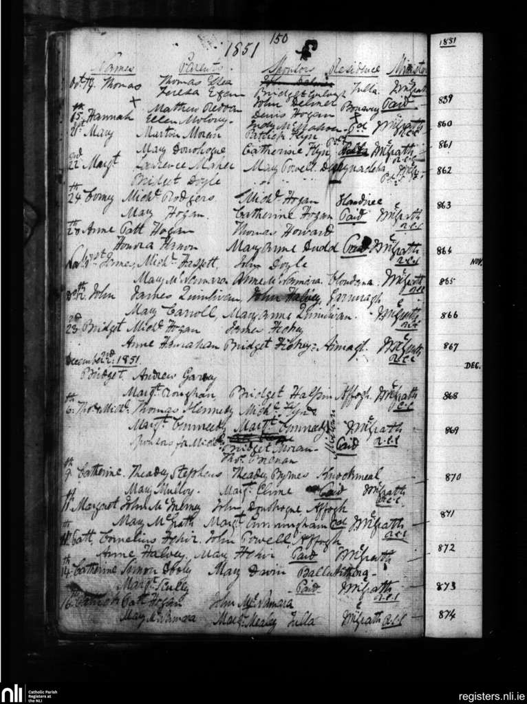 Tulla; County of Clare; Diocese of Killaloe. Baptisms, Oct. 1851 to Dec. 1851