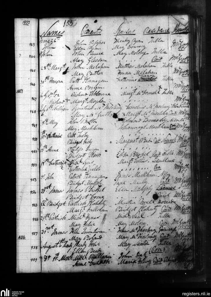 Tulla; County of Clare; Diocese of Killaloe. Baptisms, June 1852 to Aug. 1852