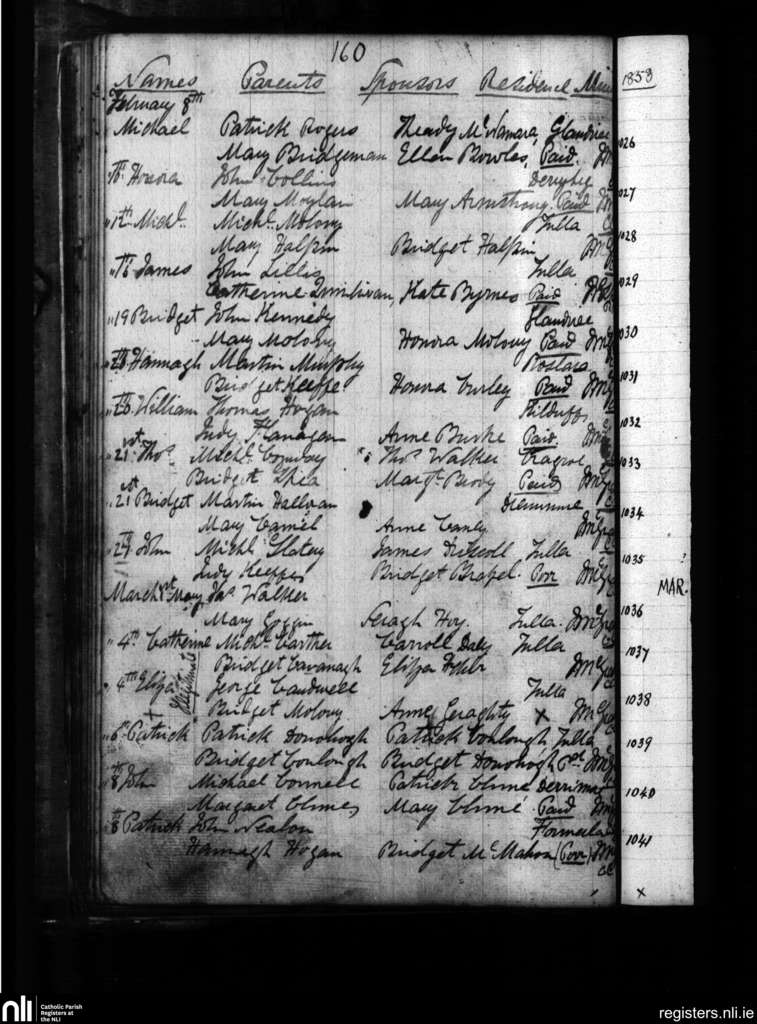 Tulla; County of Clare; Diocese of Killaloe. Baptisms, Feb. 1853 to Mar. 1853