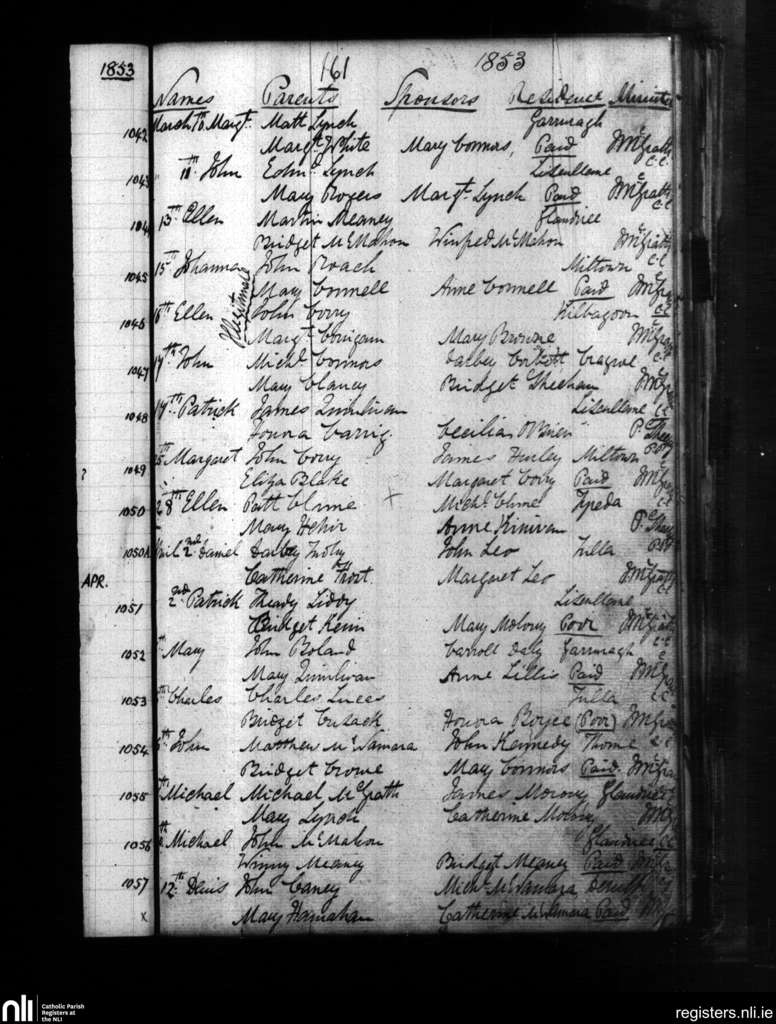 Tulla; County of Clare; Diocese of Killaloe. Baptisms, Mar. 1853 to Apr. 1853