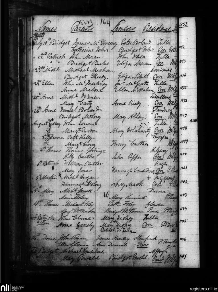 Tulla; County of Clare; Diocese of Killaloe. Baptisms, July 1853 to Aug. 1853