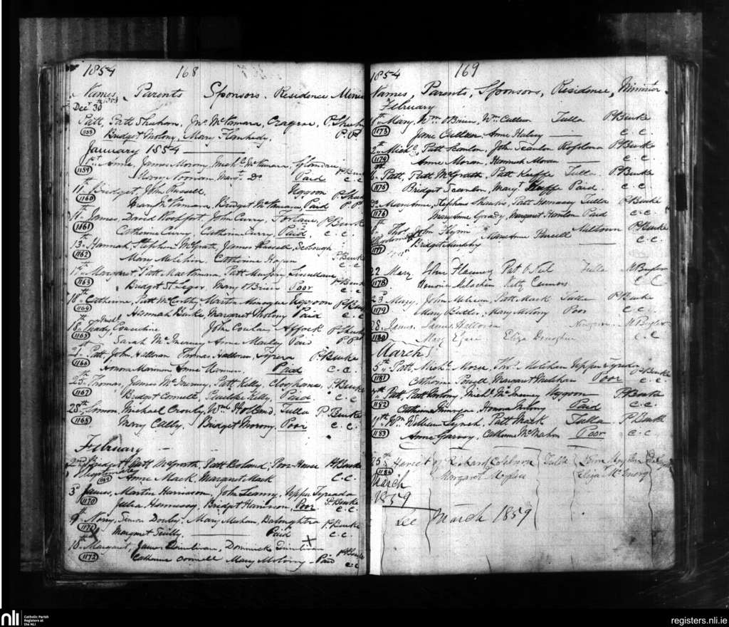 Tulla; County of Clare; Diocese of Killaloe. Baptisms, Dec. 1853 to Mar. 1854