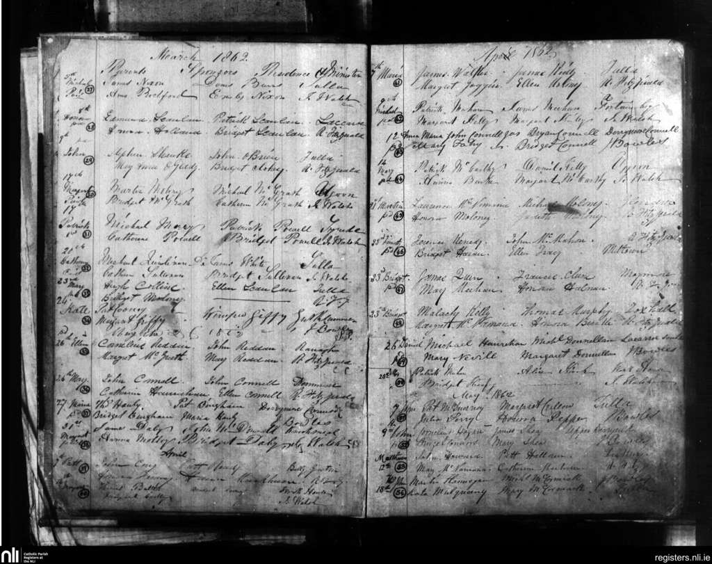 Tulla; County of Clare; Diocese of Killaloe. Baptisms, Mar. 1862 to May 1862