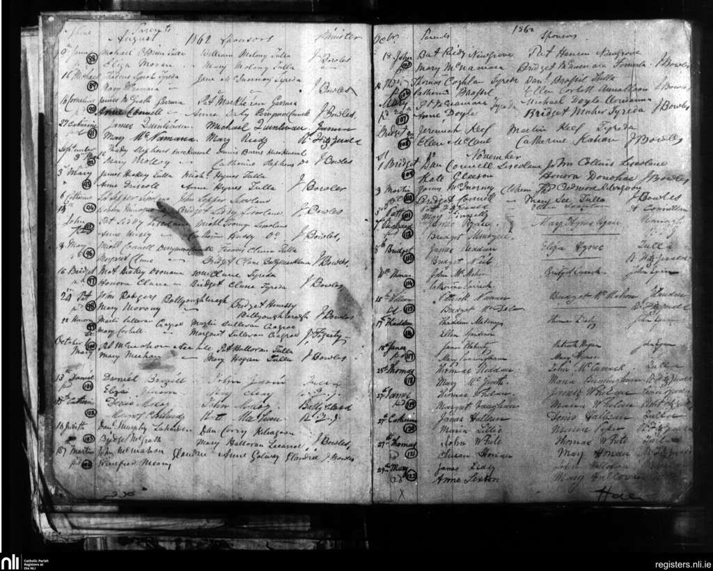Tulla; County of Clare; Diocese of Killaloe. Baptisms, Aug. 1862 to Nov. 1862