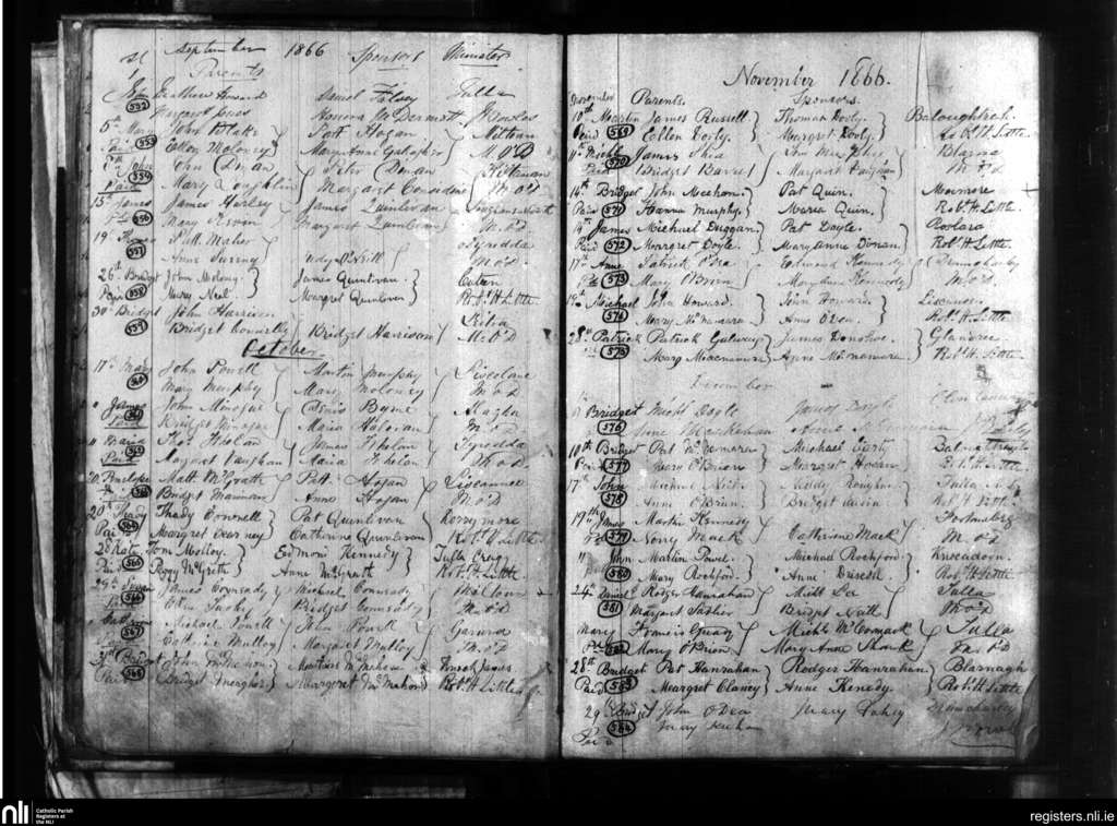 Tulla; County of Clare; Diocese of Killaloe. Baptisms, Sep. 1866 to Dec. 1866