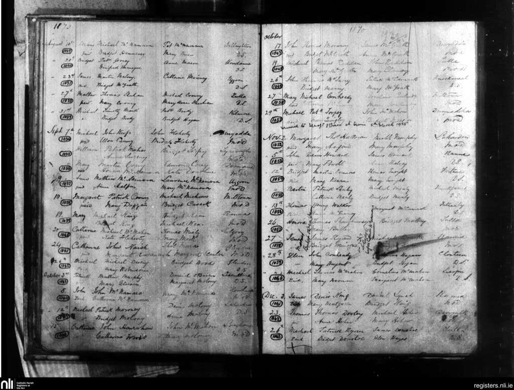 Tulla; County of Clare; Diocese of Killaloe. Baptisms, Aug. 1870 to Dec. 1870