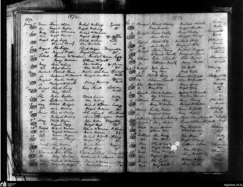 Tulla; County of Clare; Diocese of Killaloe. Baptisms, Jan. 1872 to Mar. 1872