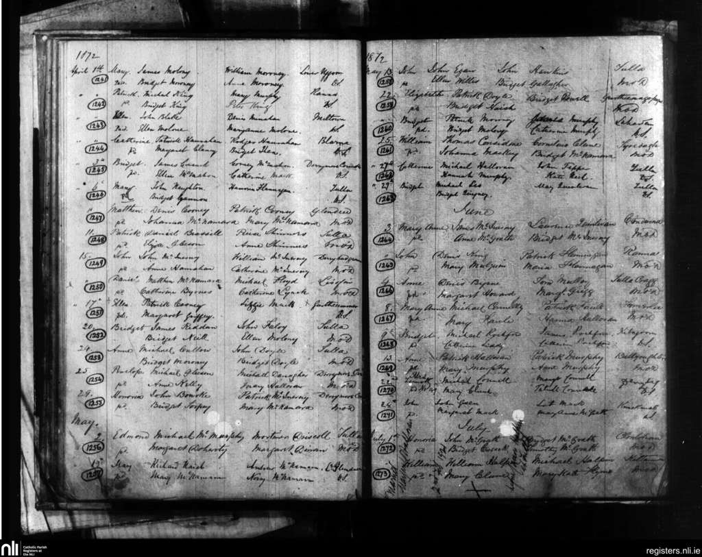 Tulla; County of Clare; Diocese of Killaloe. Baptisms, Apr. 1872 to July 1872
