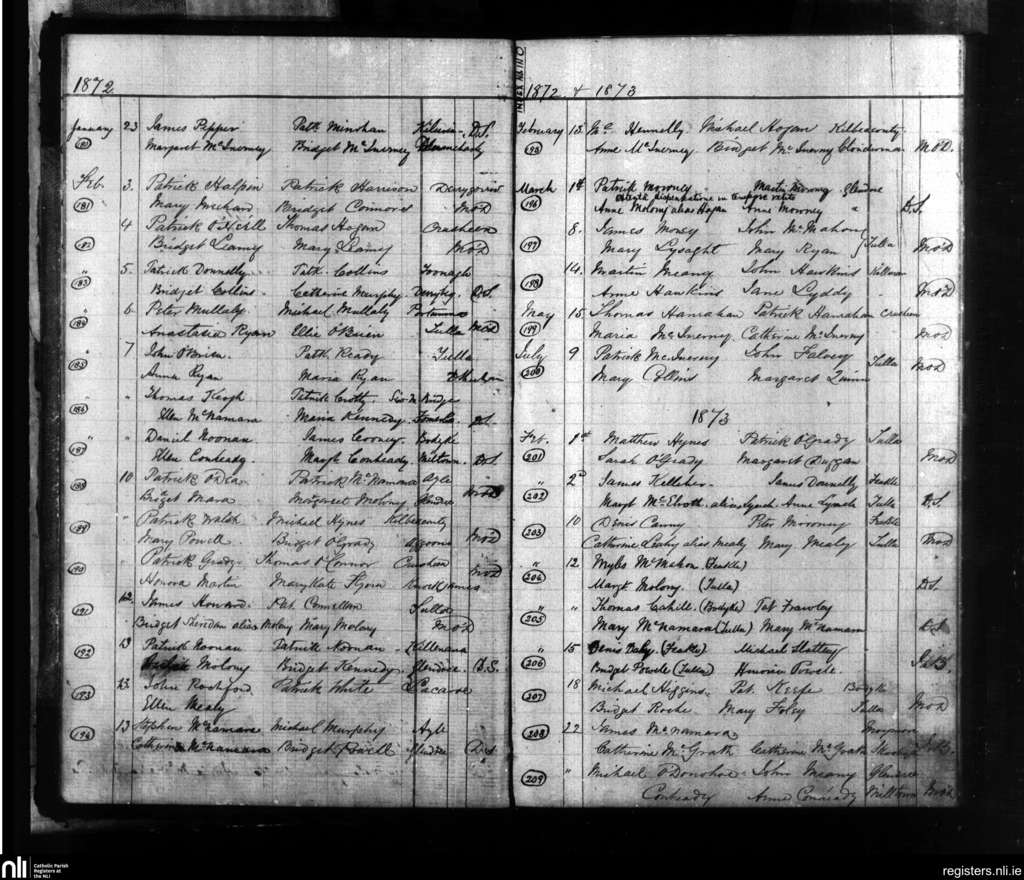 Tulla; County of Clare; Diocese of Killaloe. Marriages, Jan. 1872 to Feb. 1873