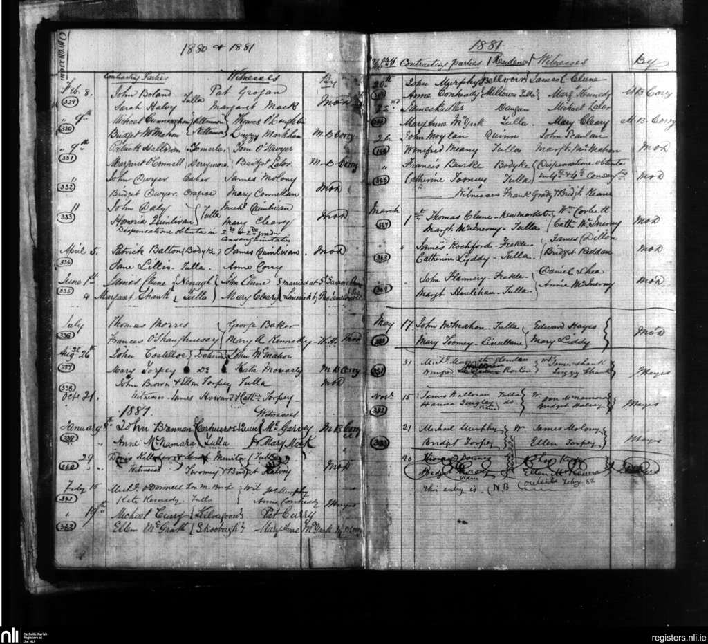 Tulla; County of Clare; Diocese of Killaloe. Marriages, Feb. 1880 to Nov. 1881