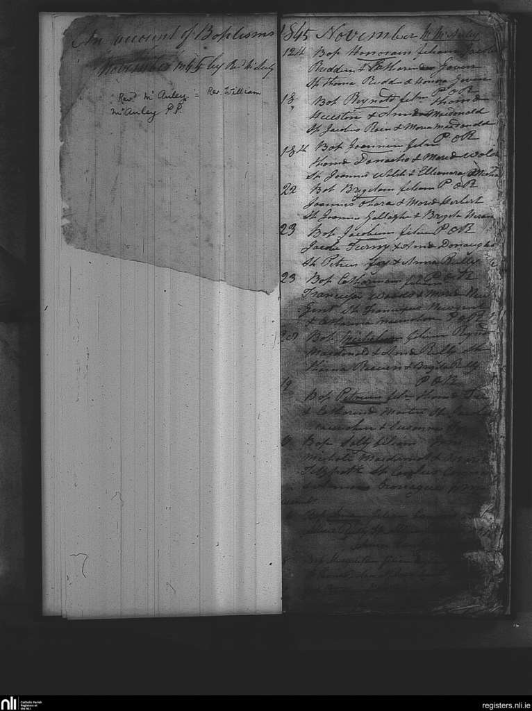 Annagh; County of Cavan; Diocese of Kilmore. Baptisms, Nov. 1845 to Dec. 1845