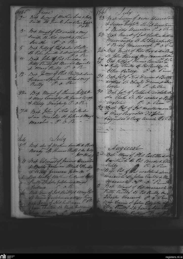 Annagh; County of Cavan; Diocese of Kilmore. Baptisms, June 1846 to Aug. 1846