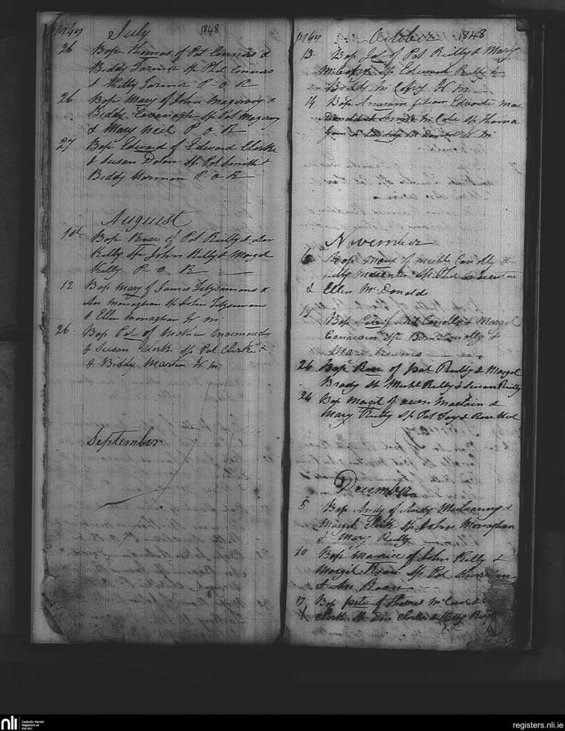 Annagh; County of Cavan; Diocese of Kilmore. Baptisms, July 1848 to Dec. 1848