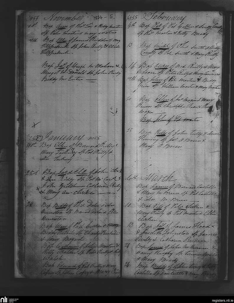 Annagh; County of Cavan; Diocese of Kilmore. Baptisms, Nov. 1854 to Mar. 1855