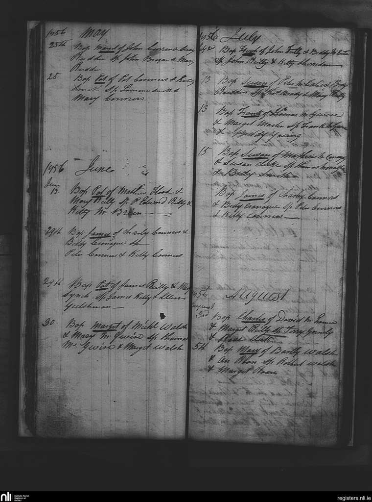 Annagh; County of Cavan; Diocese of Kilmore. Baptisms, May 1856 to Aug. 1856