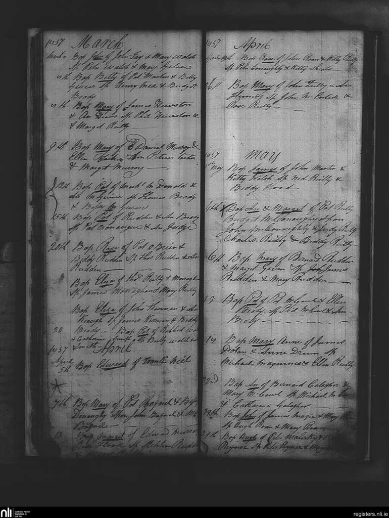 Annagh; County of Cavan; Diocese of Kilmore. Baptisms, Mar. 1857 to May 1857