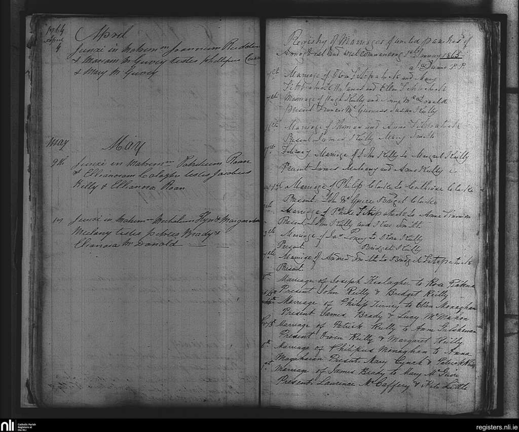 Annagh; County of Cavan; Diocese of Kilmore. Marriages, Apr. 1864 to Jan. 1865
