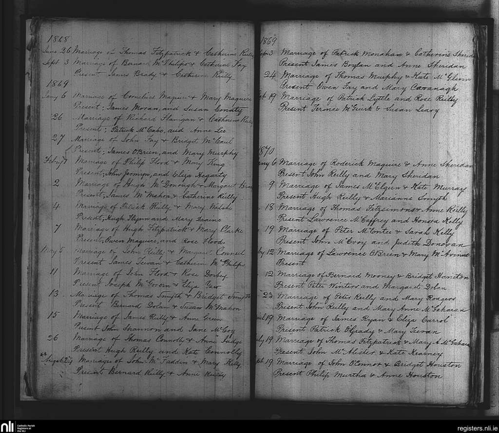 Annagh; County of Cavan; Diocese of Kilmore. Marriages, June 1868 to Sep. 1870