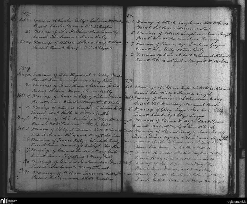 Annagh; County of Cavan; Diocese of Kilmore. Marriages, Oct. 1870 to Sep. 1872