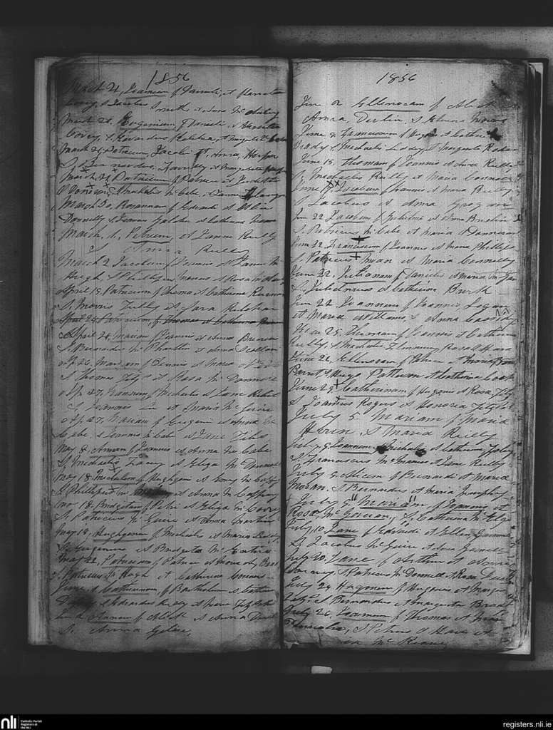 Annagh; County of Cavan; Diocese of Kilmore. Baptisms, Mar. 1856 to July 1856