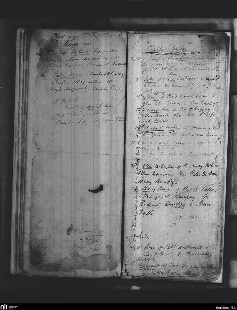 Annagh; County of Cavan; Diocese of Kilmore. Baptisms, Mar. 1870 to July 1872