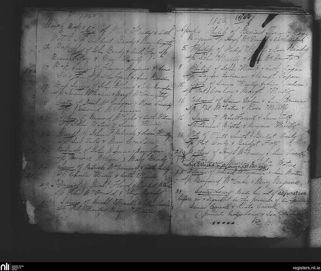 Annagh; County of Cavan; Diocese of Kilmore. Baptisms, Mar. 1865 to Apr. 1865