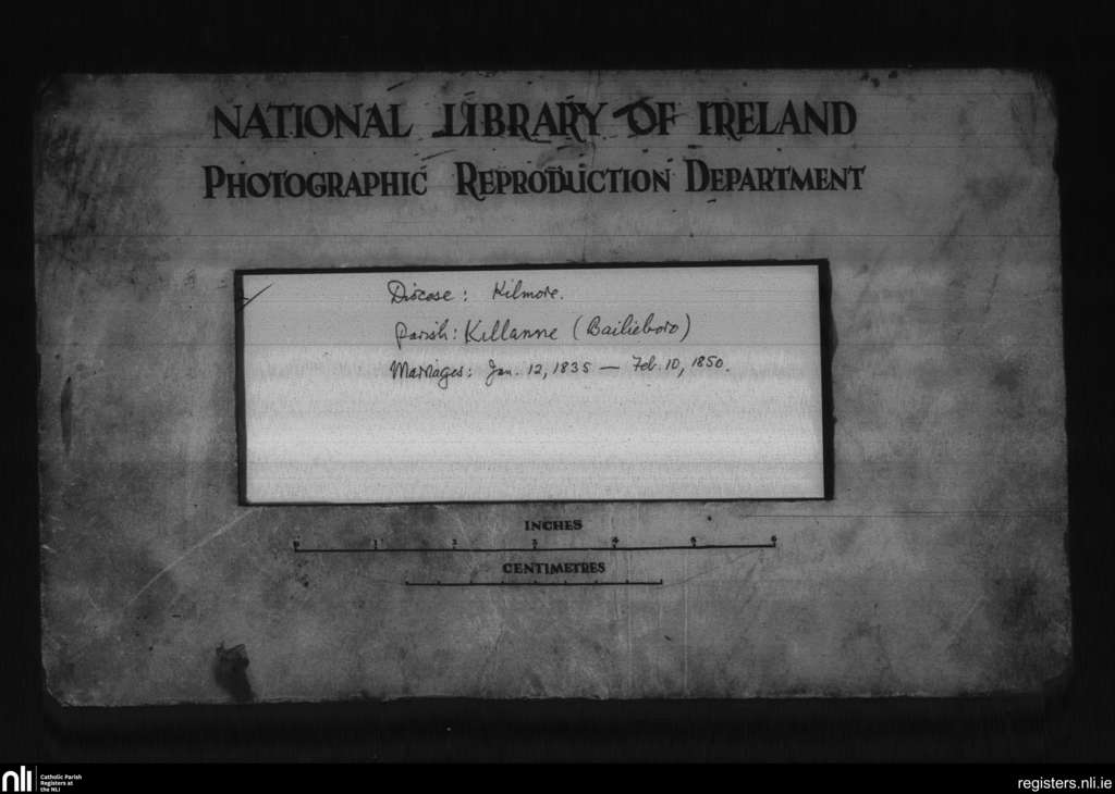 Killanne; County of Cavan; Diocese of Kilmore. Marriages