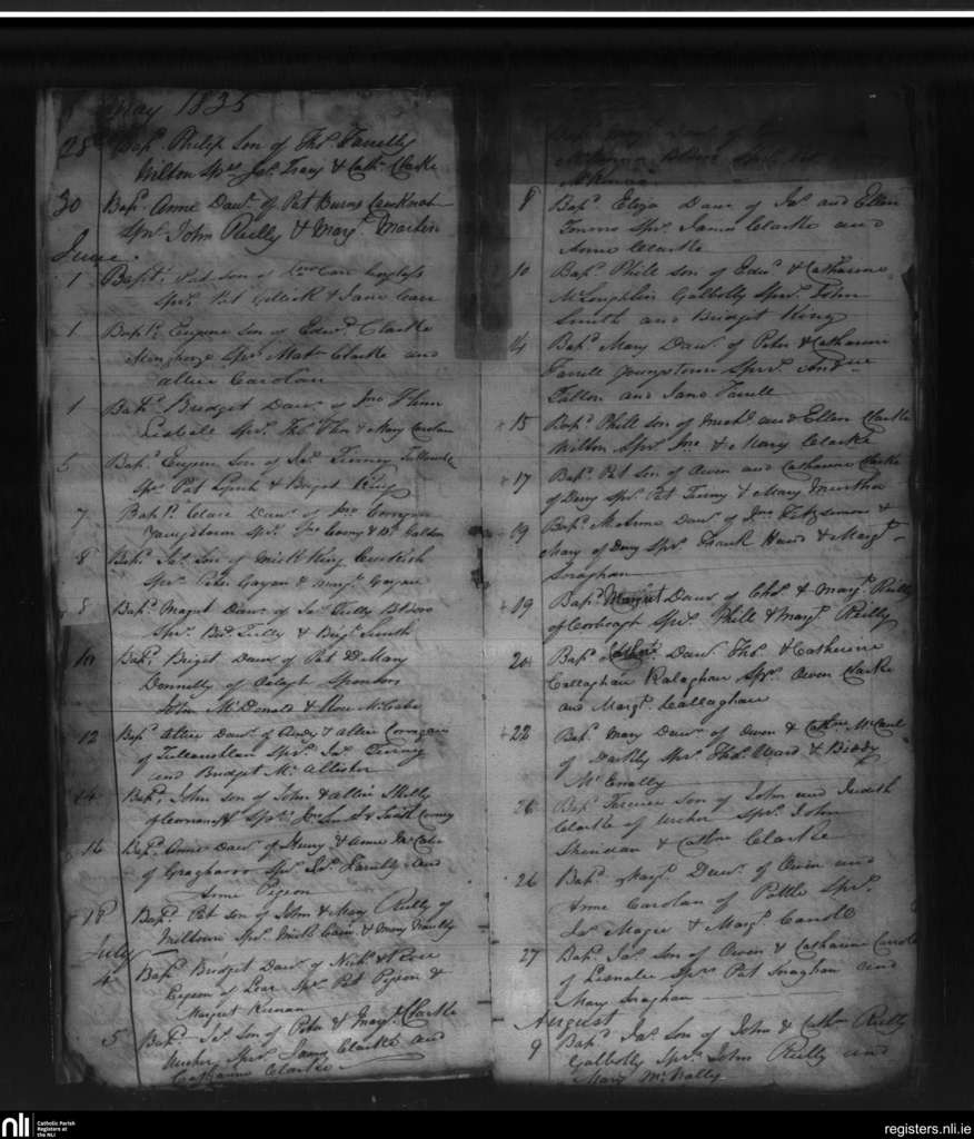 Killanne; County of Cavan; Diocese of Kilmore. Baptisms, May 1835 to Aug. 1835
