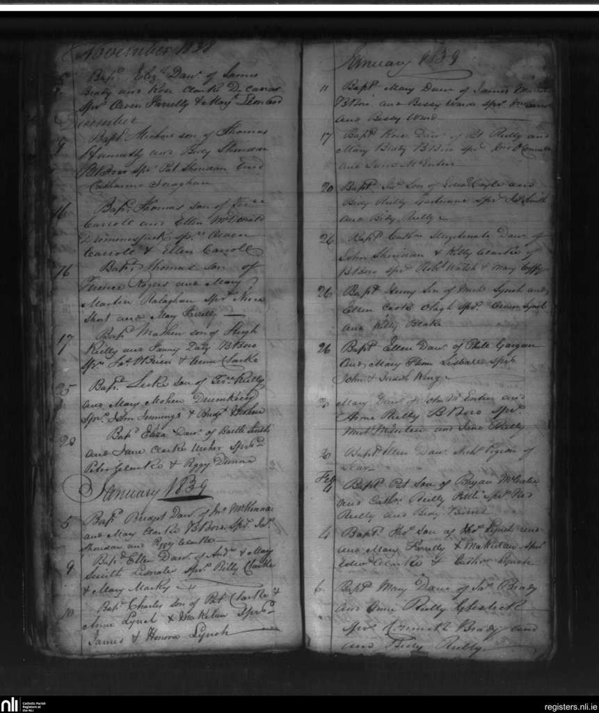 Killanne; County of Cavan; Diocese of Kilmore. Baptisms, Nov. 1838 to Feb. 1839