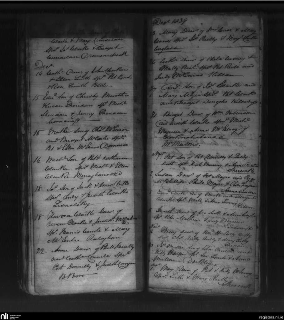 Killanne; County of Cavan; Diocese of Kilmore. Baptisms, Nov. 1839 to Dec. 1839