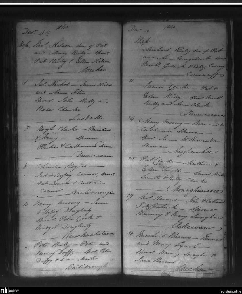 Killanne; County of Cavan; Diocese of Kilmore. Baptisms, Dec. 1840
