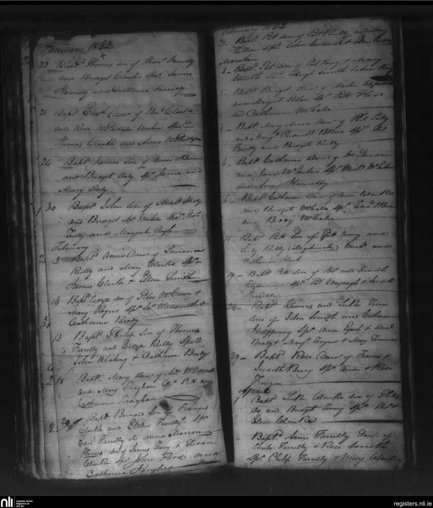 Killanne; County of Cavan; Diocese of Kilmore. Baptisms, Jan. 1842 to Apr. 1842