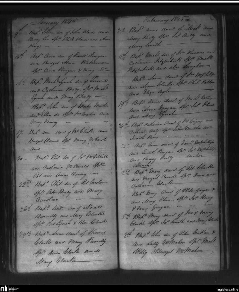 Killanne; County of Cavan; Diocese of Kilmore. Baptisms, Jan. 1845 to Mar. 1845