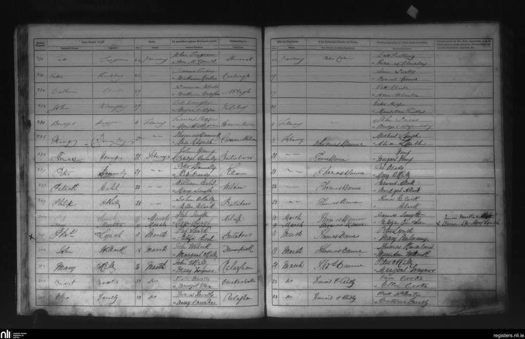Killanne; County of Cavan; Diocese of Kilmore. Baptisms, Jan. 1870 to Mar. 1870